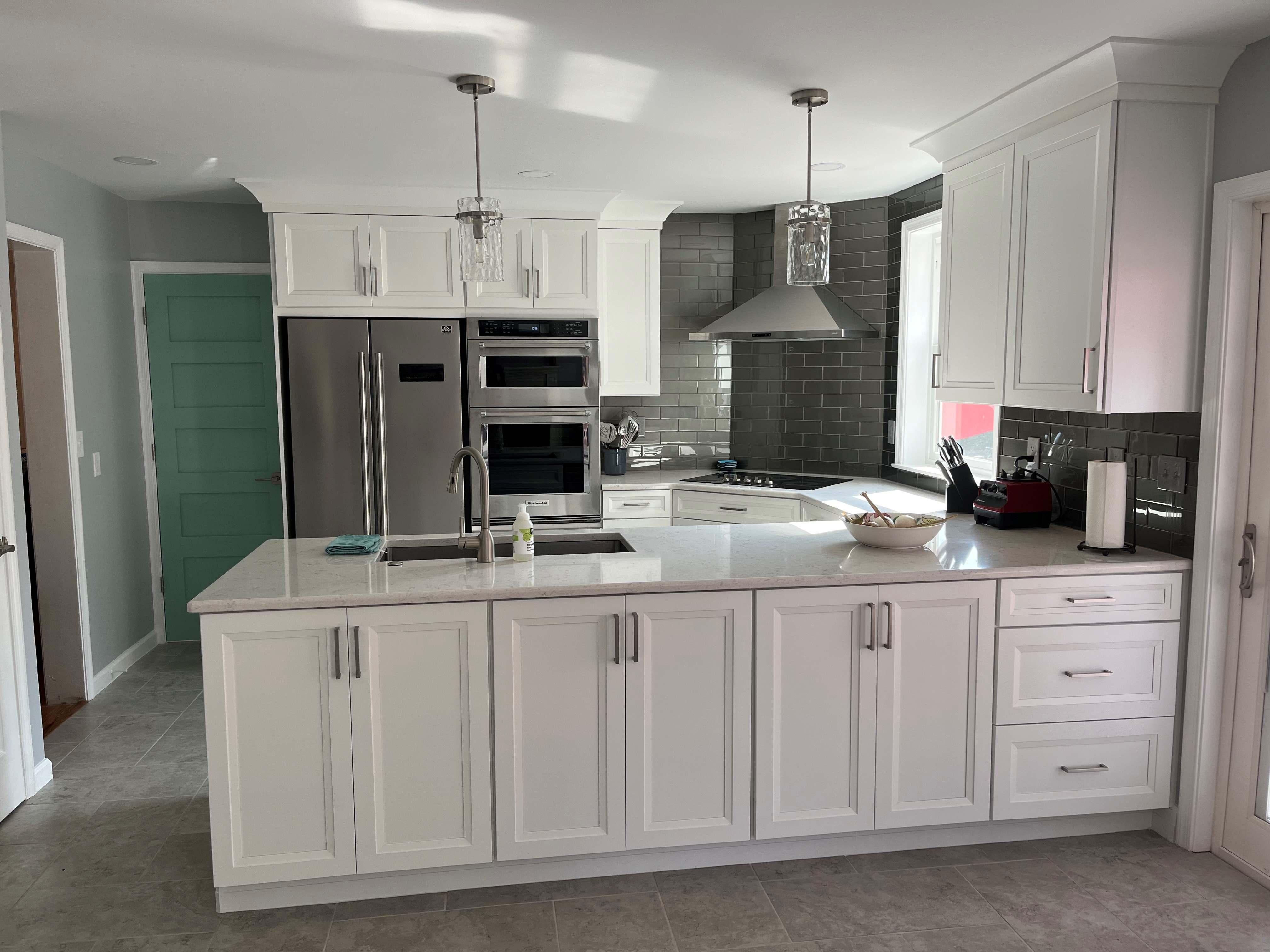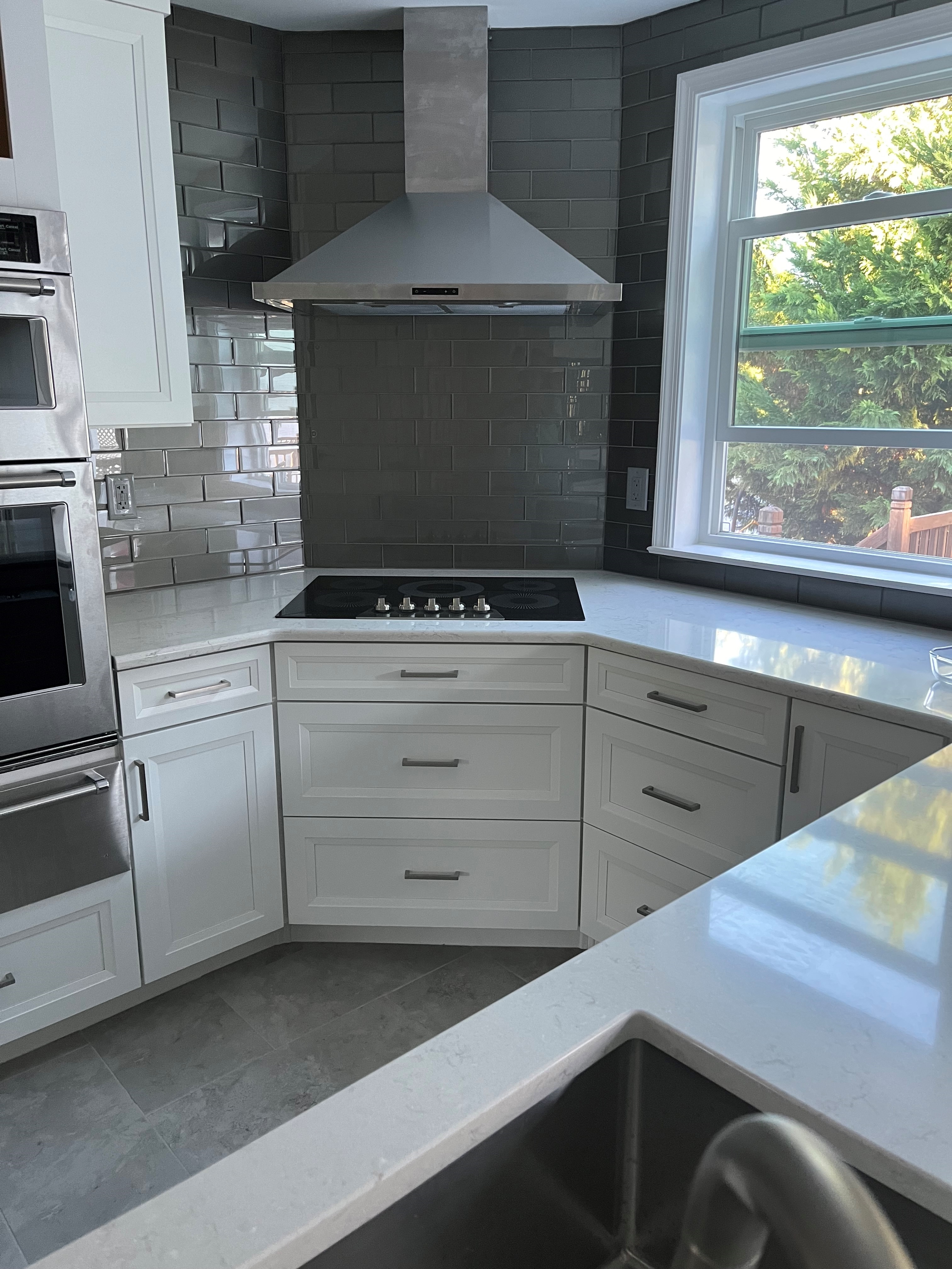 I should mention too that there are two far corners of the kitchen that are already done. I was able to have those done as smaller separate projects and it allowed us to live with the cabinet style, backsplash, and countertop for a couple of years before putting it throughout the kitchen. I used the same contractor for those projects.
