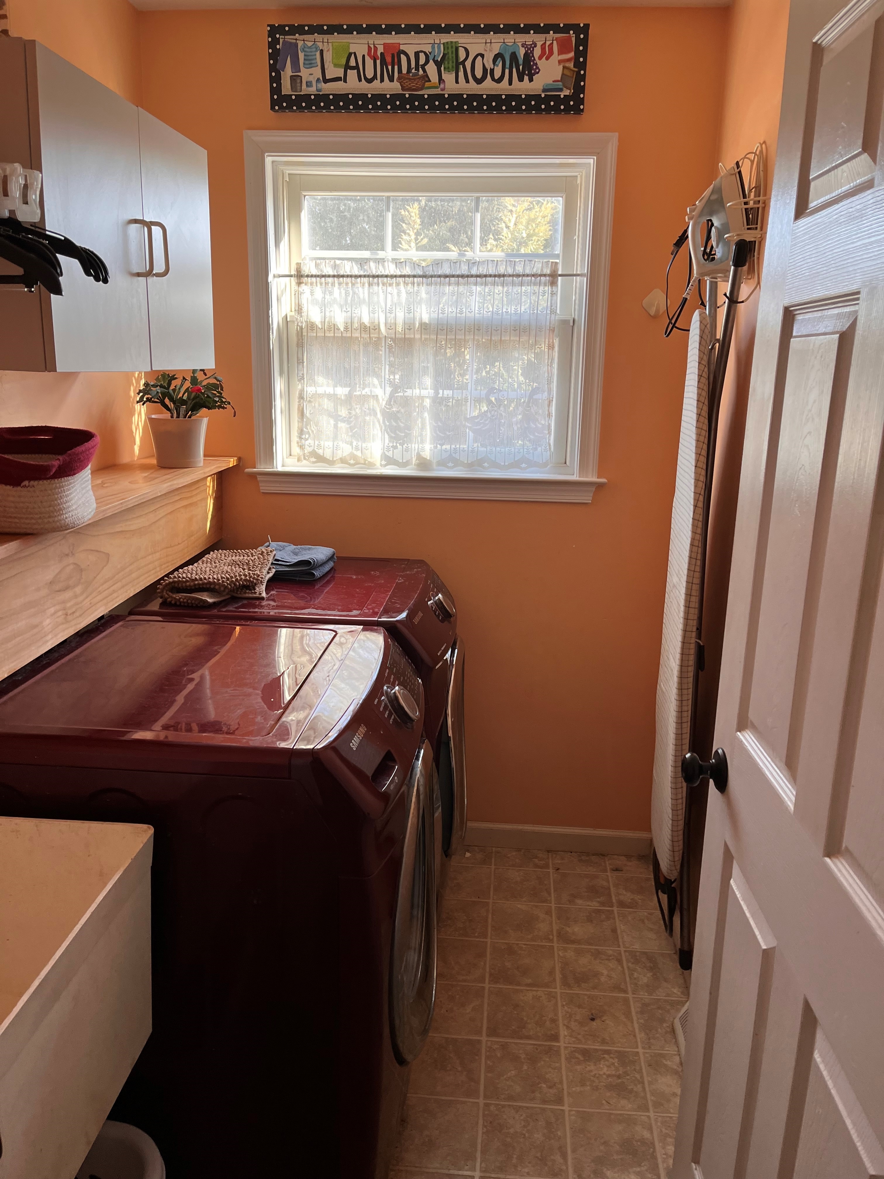 And in the laundry room: The triangle closet in the laundry room behind the stove cabinet was finished. The lower trim was done on the cabinets. The walls were painted.